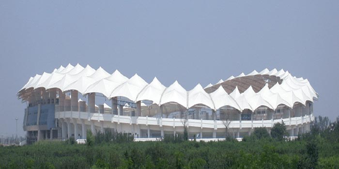 Use PTFE-coated glass fiber or PVC membrane materials to form a large-span column-free space through a two-way tensioning system. For example: